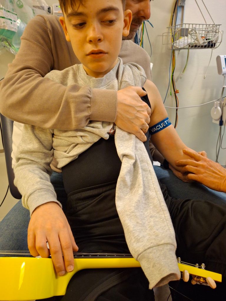 Omdat de kuitspieren en achillespezen van Gideon te kort zijn, gaan beide voeten in het gips (gipsredressie). Hiervoor kreeg hij een roesje (midazolam), zodat alles zo prettig mogelijk zou verlopen. Ook moest er bloed geprikt worden in verband met zijn medicatie. Daarnaast hoorden we onlangs van de onderzoekers van zijn syndroom dat het belangrijk is om zijn vitamine B12- en foliumzuurwaarden goed in de gaten te houden. Na wat heen en weer bellen is het gelukt om alles te combineren. Erg fijn!