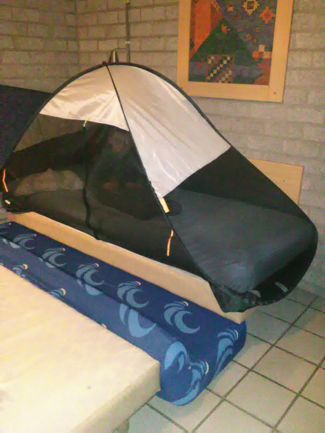 Ondertussen sluit ik een heel ondeugend kijkende Gideon in de armen en meteen bereikt mij inderdaad een enorme vieze geur! Terwijl ik Gideon op de arm heb voel ik snel of zijn broek nog helemaal droog is. Gelukkig ik voel geen nattigheid!