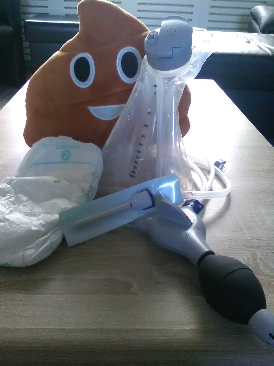 Snel lopen we naar binnen en ik bedenk me dat we maar beter meteen kunnen beginnen met het darmspoelen.
