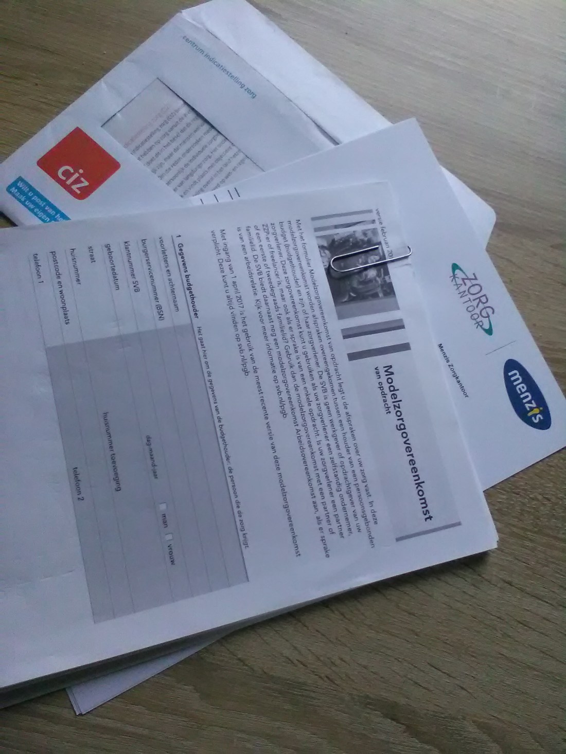 We besluiten met name de tweede vraag maar te negeren. We vullen gewoon de persoonsgegevens in en maken zelf maar een mooie bijlage met daarop duidelijk omschreven wat we nodig zijn om Gideon de juiste en nodige zorg te kunnen blijven geven.