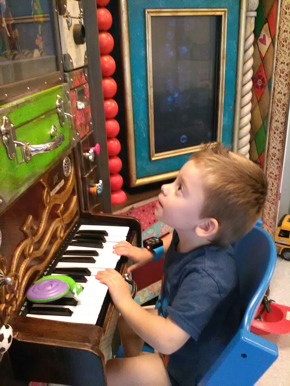 Gideon begint vrolijk aan zijn ontdekkingstocht door de kamer. De overbodige apparatuur met veel knopjes wordt snel veilig in de badkamer opgeborgen. Omdat hij vorige week nog gewogen en gemeten is, hoeft dat nu niet meer. Nadat alle standaard vragen van de intake beantwoord zijn vraagt de verpleegkundige ons hoe ze Gideon het beste kunnen benaderen. Ook het hele plan van aanpak wordt zorgvuldig met ons besproken. We voelen ons als ouders gekend en gehoord. Wat fijn! Ze houden echt rekening met Gideon en proberen het hem zo comfortabel mogelijk te maken. Ondertussen speelt Gideon vrolijke deuntjes op zijn gitaar en met een schuin oog houdt hij alles heel goed in de gaten.