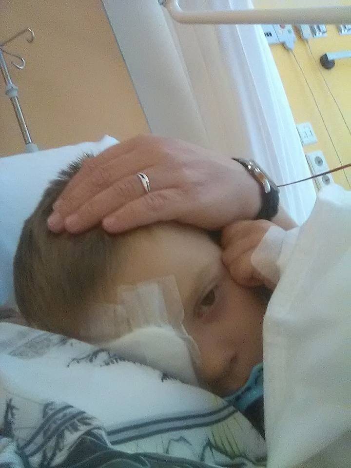 Het is maar goed dat Gideon veilig bij papa in het holletje in het ziekenhuisbed ligt, want de medicatie begint al snel te werken. Hij is zichtbaar moe en slapper dan anders. Toch maakt hij af en toe onverwachte bewegingen. Gelukkig zorgt papa ervoor dat Gideon in bed blijft en er niet uit valt!